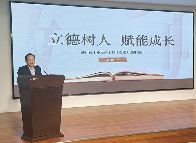 高屋建瓴,高延成主任分享班级管理“四维”智慧。会议伊始,校长助理兼教导处主任高延成以“班级管理的多元智慧”为主题,从班级建设与管理、学生沟通与心理辅导、家校共育、班主任自我成长与情绪管理四大维度,系统阐述了班主任工作的核心逻辑。