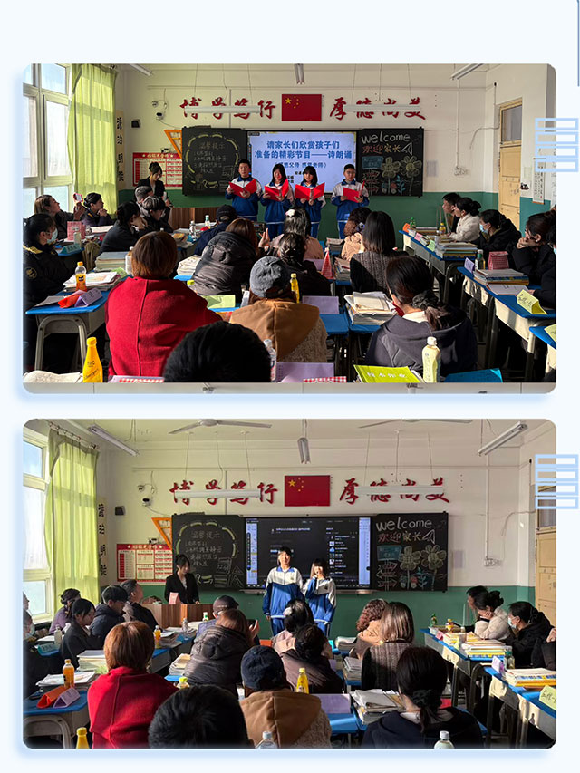 初二年级家长会以“细研育人之道,共谱成长华章”为主题,围绕班级情况、期中成绩、班级问题与家校共育四大板块展开,更融入了诸多温情环节,让家长会不止于“分析”,更充满了“温度”。