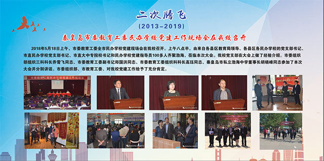 2019年是秦皇岛市私立渤海中学建校25周年,操场周围的24张展板记录了渤海中学的“荣光过往”与“曲折前行”,也展示了2013年10月达飞集团全面接管后,本届董事会六年来引领渤海中学实践“二次腾飞”的历程。