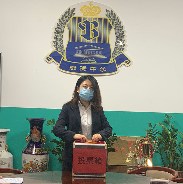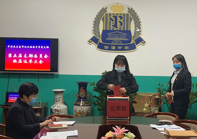 然后,大会按照选举程序,听取了会议筹备工作和资格审查报告,岳素华同志宣读了《选举办法》、候选人名单、监票人和计票人名单。大会采取无记名投票方式和差额选举办法,选举产生了岳素华、胡晓峰、万福妹、朱勤、郭春英、孙凯、谭姝7名同志组成的新一届渤海中学党支部委员会。整个选举过程透明、公开、庄严、规范、有序。