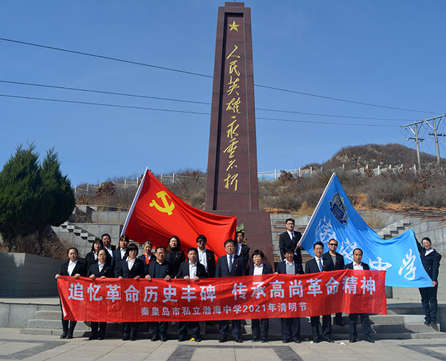 巍巍燕山埋忠骨,滔滔渤海慰英魂。这次清明节祭扫活动,让我校全体党员进一步了解、认识革命烈士,缅怀那段峥嵘岁月,激发爱党、爱国的情怀。薪火相传,让我们铭记先烈的不朽功勋,继承先烈的革命意志,在先烈呕心沥血开拓的道路上坚定地走下去,用我们的肩膀担负起历史的重任,为中华民族伟大复兴的“中国梦”努力奋斗!让亲爱的祖国更加自信、从容!更加美丽、强盛!