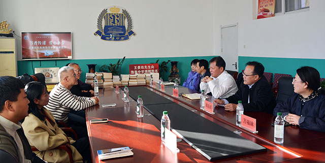 王贵玖先生向胡晓峰董事长递交赠书清单