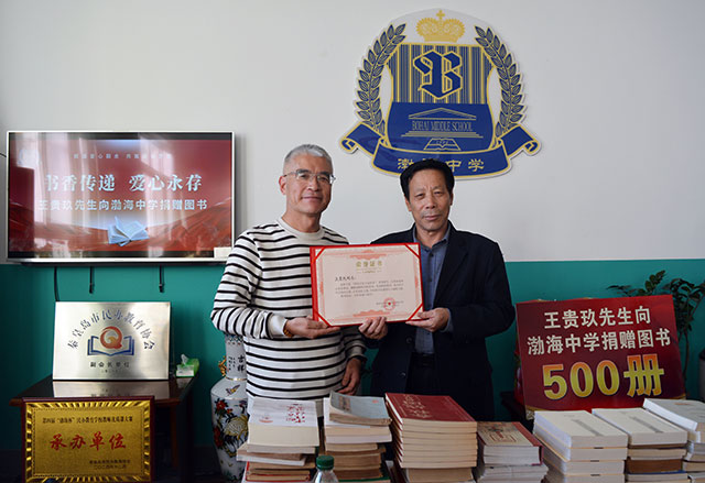 受赠方渤海中学董事长胡晓峰在致辞中,对王贵玖先生的无私善举表达了最诚挚的感谢。他指出,这批500余本捐赠图书涵盖文学经典、科普读物、成长励志等多个品类,内容丰富、实用性强,将有效丰富学校馆藏,为师生提供更多优质阅读资源。不仅能满足同学们的求知渴望,更能在校园内营造浓厚的阅读氛围,为孩子们打开探索世界的多元窗口,对推动学校素质教育发展、培育学生人文素养具有重要意义。学校将妥善管理和利用这批图书,让每一本书都发挥最大价值,让爱心捐赠转化为滋养学子成长的精神养分,不辜负捐赠方的殷切期望与社会各界对教育事业的关心支持。