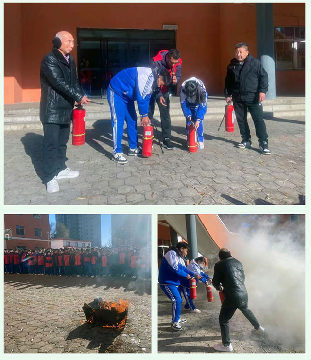 疏散集结后,高中部德育主任李鹏为全体师生开展消防安全知识培训。他结合校园火灾案例,详细讲解了火灾预防要点、突发火情应对流程,重点示范了干粉灭火器 “提、拔、握、压” 四字操作口诀,清晰演示了检查压力表、瞄准火源根部灭火等关键步骤。随后,生活老师和学生代表上前实操演练,亲手体验灭火器灭火全过程,切实将理论知识转化为实战技能。