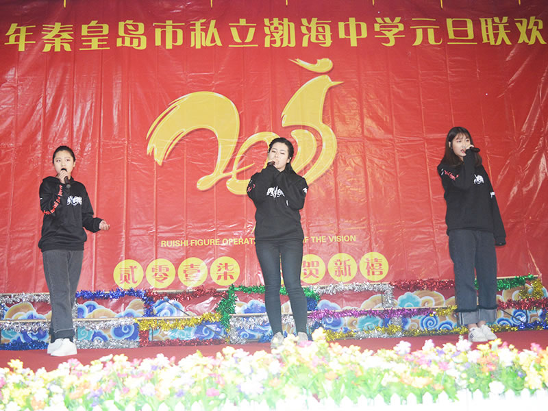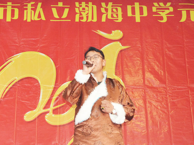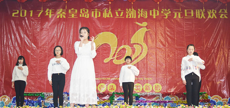 2016年12月30日上午,渤海中学校礼堂里五色气球高悬,欢声笑语不断,学校董事长兼校长胡晓峰、各部门负责人、西藏塔尔钦苹果小学来我校学习交流成员、学生家长与全体师生共同观看文艺演出,喜迎2017年的到来。
